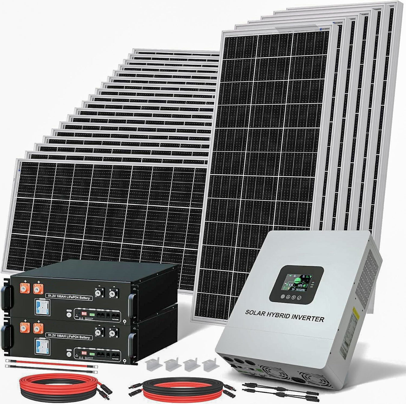 SunGoldPower Off-Grid Solar Kit 10kW Solar Inverter 48VDC 120V/240V + 4 x 5.12KWH Powerwall Lithium Battery + 10 x 550 Watts Solar Panels The Su...